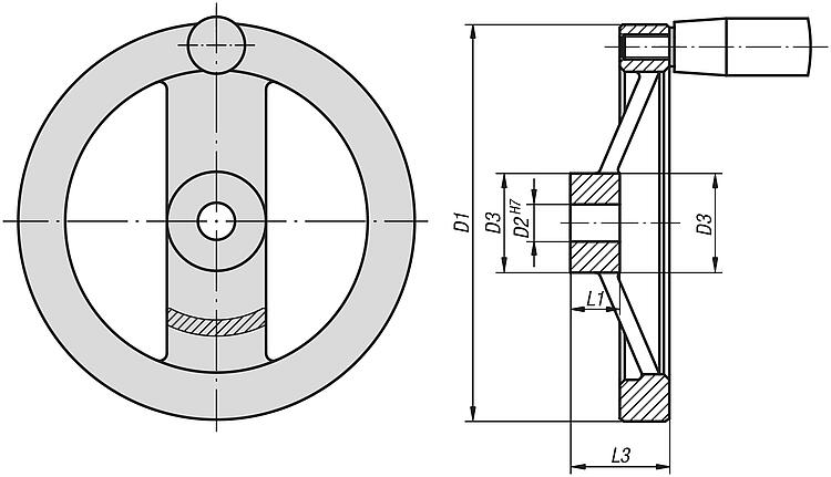 DescripciónMaterial:Ruedas de mano de dos radios de aluminio. Empuñadura cilíndrica de duroplast PF 31-DIN 7708, negro, parte del eje de acero galvanizado.Versión:Llanta de la rueda girada y pulida. A petición:Cubos con hembra cuadrada o volantes recubiertos con plástico.Características especiales: DescargarAquí figura información recopilada en formato PDF: