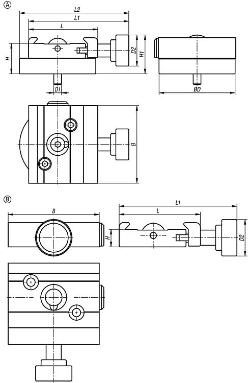 DescripciónMaterial:Cuerpo base de aluminio. Fijación de acero inoxidable. Tornillo de fijación de acero.Versión:Cuerpo base con revestimiento duro. Fijación de acabado natural. Tornillo de fijación cincado.Indicación:Los soportes de sujeción rápida sirven de base de un sistema de cambio rápido. Los soportes de sujeción rápida se pueden montar directamente sobre la mesa de máquinas o la placa de base mediante un taladro roscado. Los soportes de sujeción rápida se pueden unir sin herramientas con los adaptadores o los elementos angulares. El soporte de sujeción rápida también está disponible sin placa intermedia.Accesorios:Soporte de liberación rápida con elemento angular 33227-10. Soporte de liberación rápida con elemento angular giratorio 34007. Soporte de liberación rápida giratorio 34007-02. Prensas de precisión 33225-5003511. Prensa centradora de precisión 34010. Adaptador 33225-20. Mandril de precisión de tres mordazas 34011. Adaptador 33226-05. Soportes de aguja 33227. Prensador de piezas pequeñas 34012. Prismas magnéticos 34013. Prismas con tornillo tensor de muelle / Pisador 34013-05. Prismas 34013-10. Placas de sujeción 34032. Características especiales: DescargarAquí figura información recopilada en formato PDF: