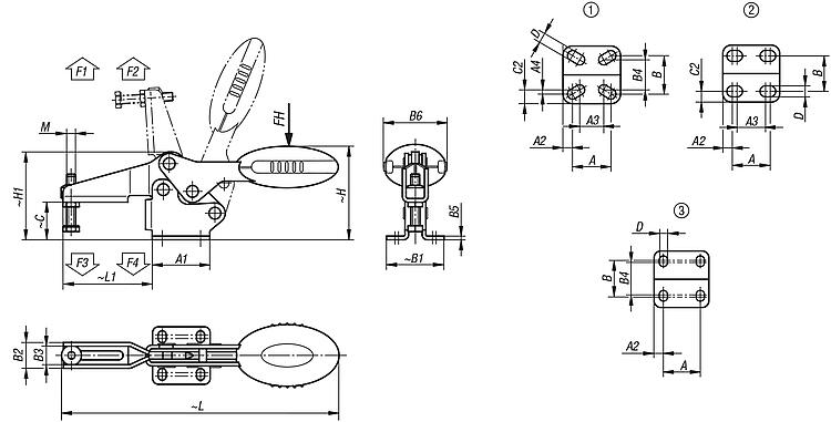 Ficha de datos 05900 Dispositivos de sujeción rápida horizontal con pie horizontal y husillo de presión ajustable, acero inoxidable 278 kB