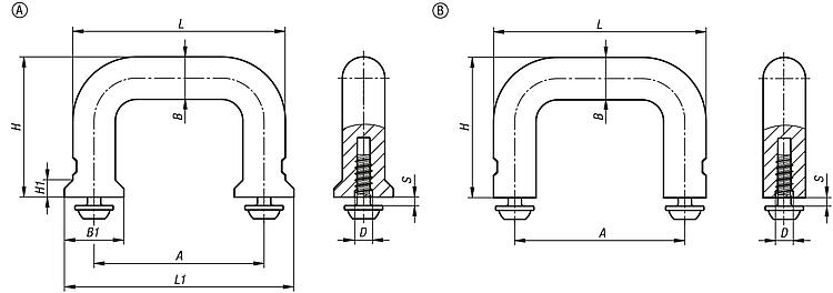 | Referencia | Forma | Color del cuerpo de base | A | B | B1 | D | H | H1 | L | L1 | S máx. | Capacidad de carga N | CAD | Acc. | Precio | Pedir |
