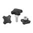 Empuñaduras en cruz de plástico con casquillo de acero saliente, forma L: rosca exterior
