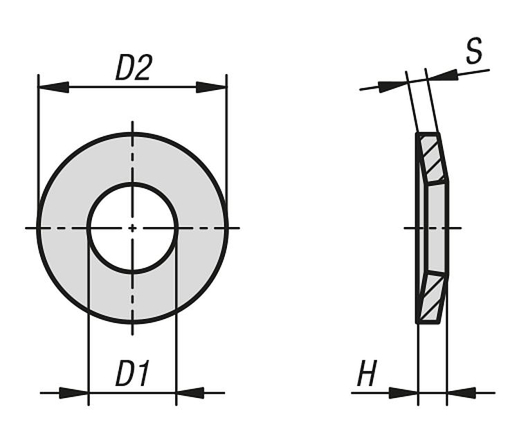 DescripciónMaterial:Acero para muelles.Versión:endurecido, acabado natural lubricado o cincado mediante procedimiento mecánico.Indicación:Mediante la conformación especial (moldeado como un muelle de disco), la arandela elástica logra un gran efecto de resorte. La fuerza del muelle que se forma con carga (aplanado) de la arandela elástica es del 70 - 90 % de la correspondiente fuerza de contacto de un tornillo de la clase de resistencia 8.8 - 10.9.