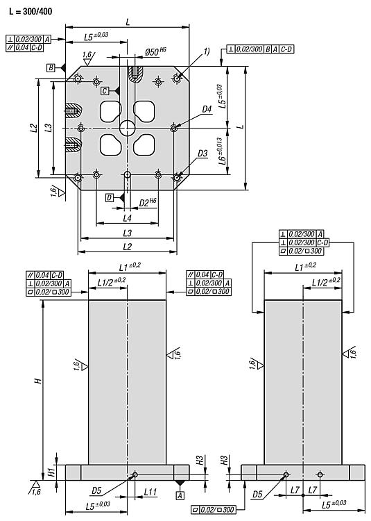 DescripciónMaterial:GJL 300.Versión:Superficies de apoyo y superficies de sujeción con mecanizado de precisión.