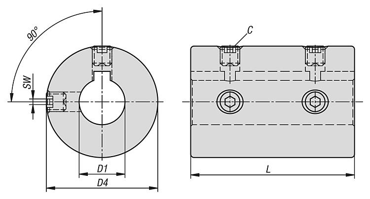 23049Acoplamientos rígidos Sujeción con tornillo de sujeción |