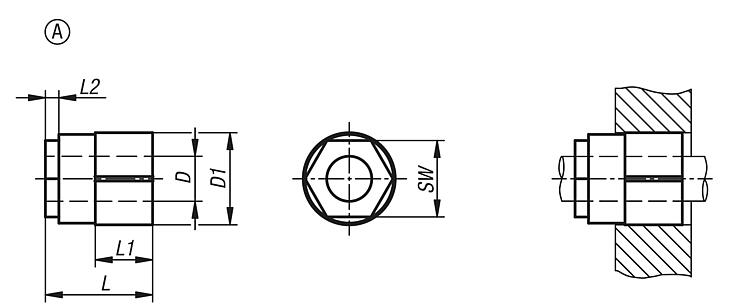 Juegos de dispositivos de sujeción con tuerca central, forma A |