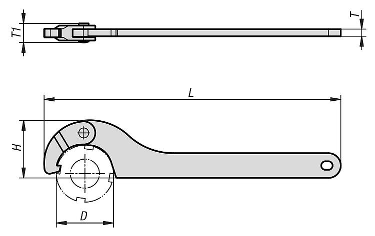 Con bordes redondeados para facilitar el manejo.Modo de accionamiento:Marcha suave y preajuste optimizado gracias a la arandela elástica adicional. Se puede manejar con una sola mano.Ventajas:Mayor par gracias al eje más largo. El gancho articulado prolongado garantiza un manejo envolvente y seguro. El remache reforzado permite la transmisión de fuerzas mayores.Características especiales: DescargarAquí figura información recopilada en formato PDF: